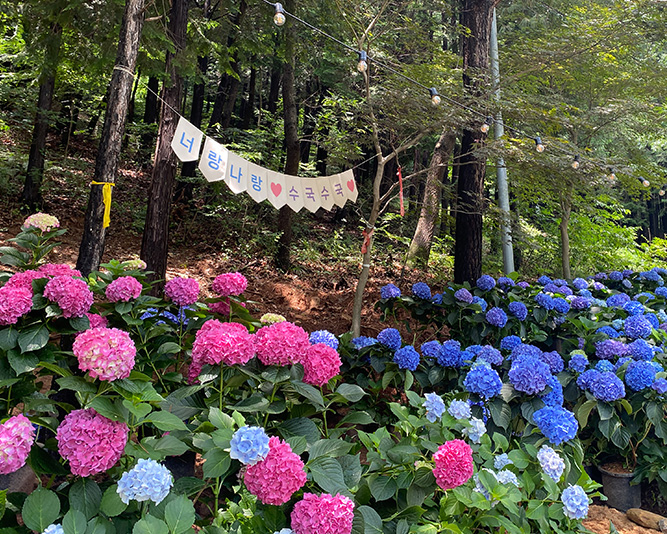 - 포토존: 곳곳에 마련된 수국 배경의 사진 촬영 명소