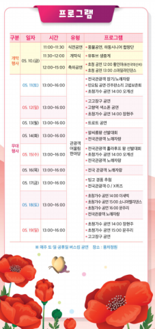| 하동 북천 꽃양귀비 축제| 곡성 가볼만한 곳 |봄꽃의 향연! 제11회 하동 북천 꽃양귀비 축제 🌺🚲 (0) | 2025.05.14 |
