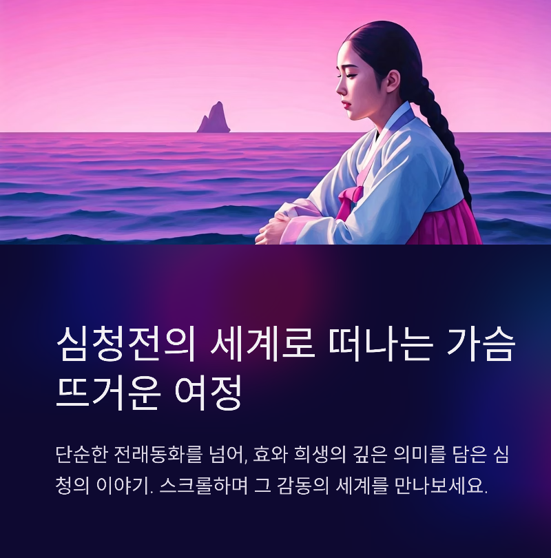 이렇게 보면 심청전은 단순한 효행 이야기가 아니라, 인간의 선택과 가치관, 사회적 기대와 개인의 욕망, 희생과 보상 등 복잡한 주제들을 다루는 심오한 이야기라고 볼 수 있어요. 400년이 넘는 세월 동안 사랑받아온 이유가 있는 거죠!