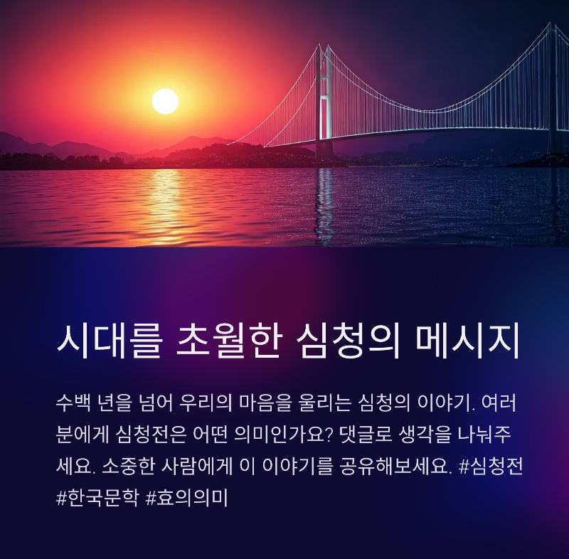 결국 중요한 건, 심청전을 무조건 비판하거나 무조건 찬양하는 극단적인 태도보다는, 이 오래된 이야기를 통해 우리 자신과 우리 사회의 가치관을 돌아보는 성찰의 기회로 삼는 것이 아닐까 생각해요. 어떤 면에서 심청은 우리 모두의 모습이기도 하니까요.