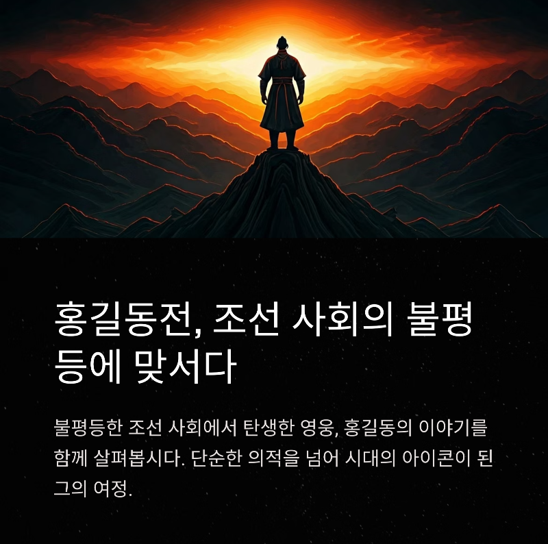 요즘 우리 사회에서도 계층 간 이동성이 줄어들고, 불평등이 심화되는 현상이 나타나고 있잖아요. '수저론'이니 '흙수저'니 하는 말들이 널리 퍼진 것만 봐도 알 수 있죠. 이런 시대에 홍길동의 이야기는 단순한 옛날이야기가 아니라, 지금 우리에게도 시사하는 바가 크다고 생각해요.